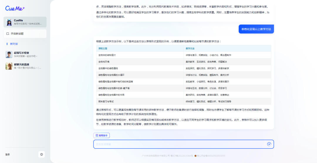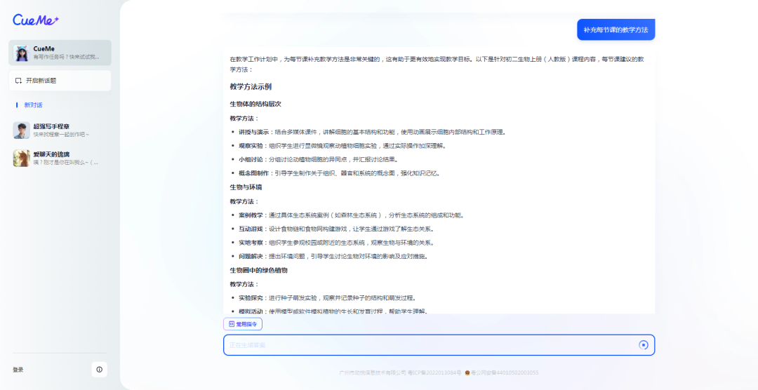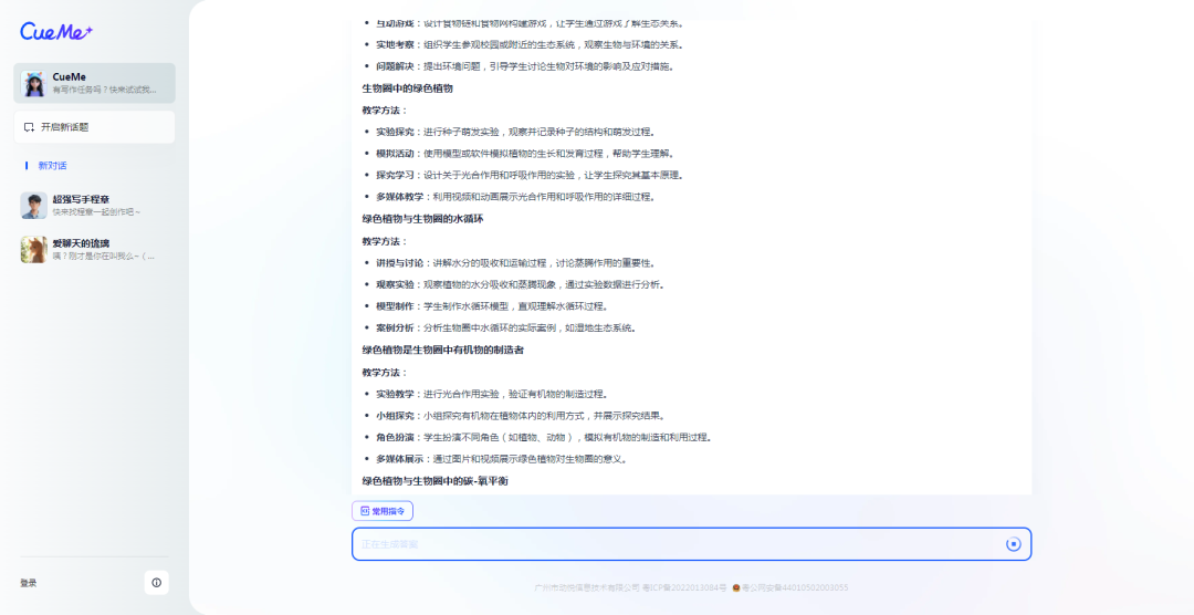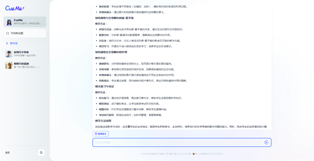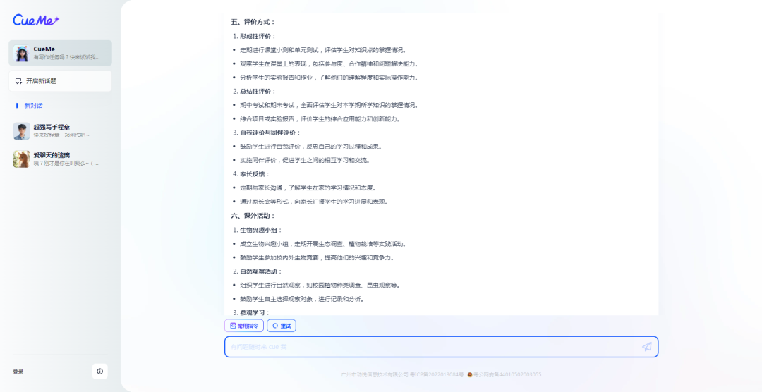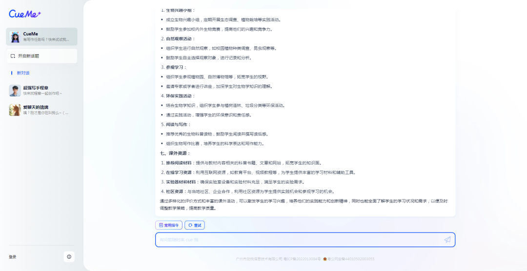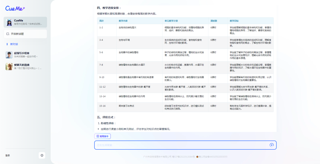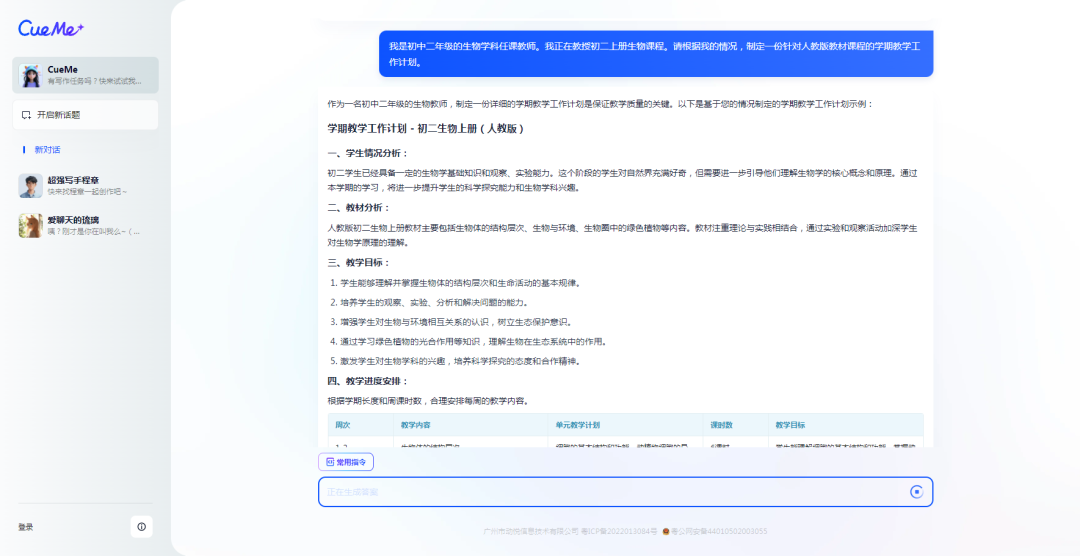 接下来,我们就以夸克旗下CueMe做相关演示,尝试用AI制定生物新学期教学工作计划。