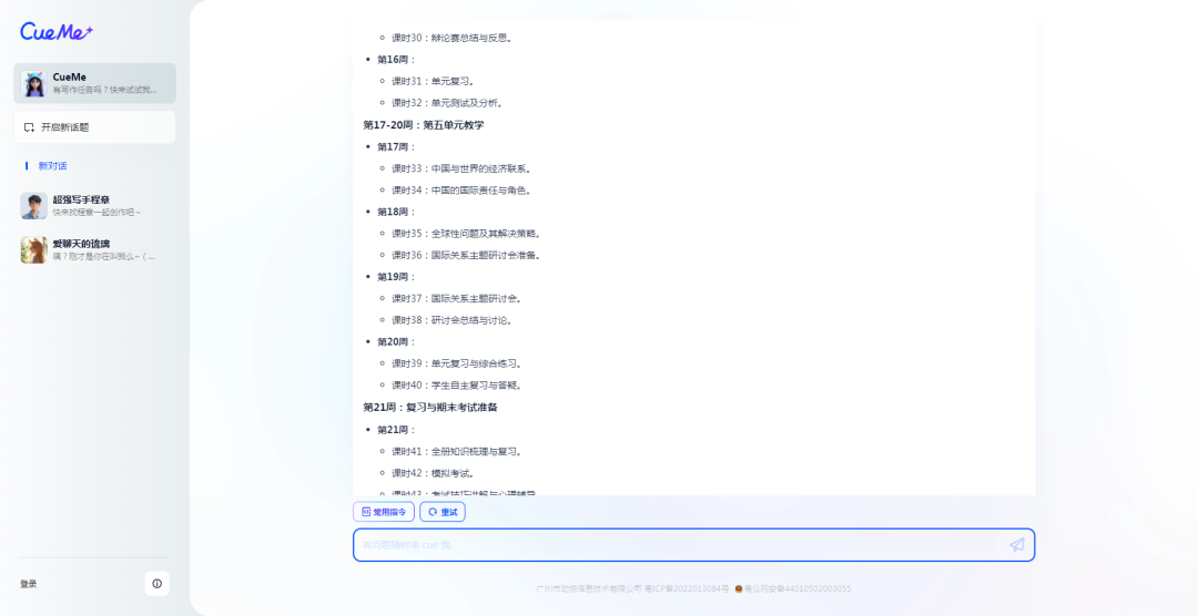类似这样的多次会话,在对其他模块的内容进行完善之后,我们就能得到一份相对完善的教学工作计划了。