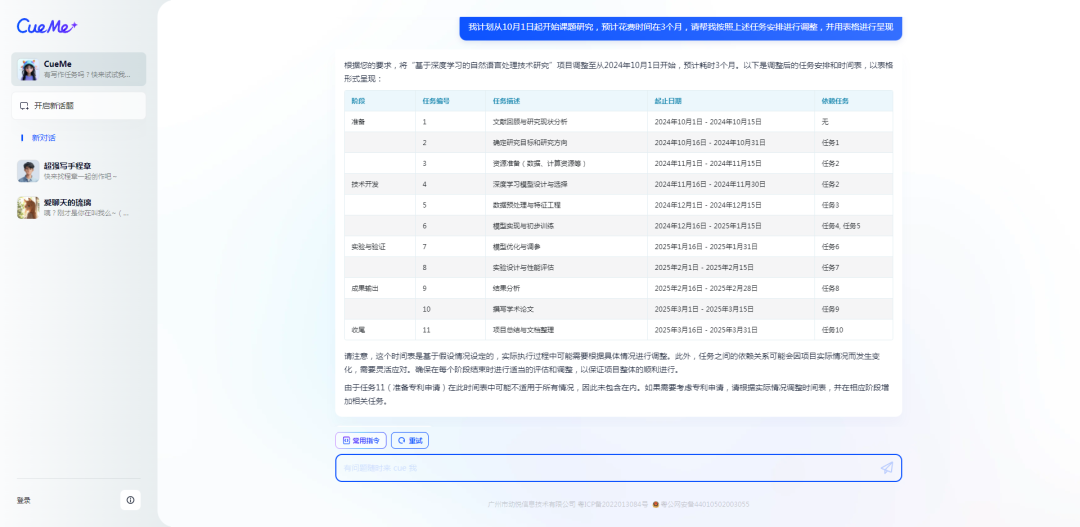这样的规划能够在保证任务按既定计划稳步推进的同时,也能有效应对和适应项目过程中可能出现的各种突发情况和变化。
