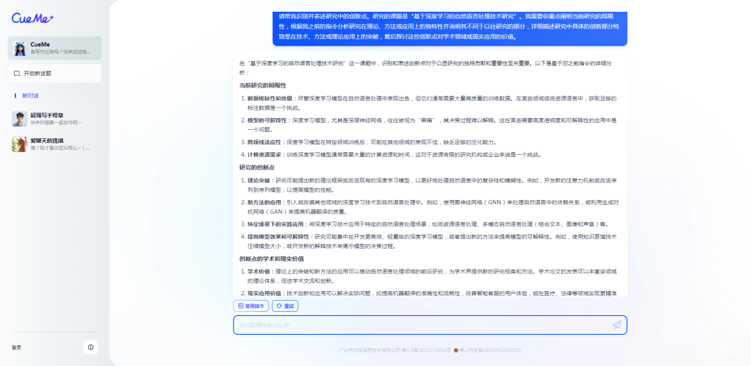由于这部分我们输入的指令要求比较多,AI返回的结果也比较详细,我们分段来看一下,到底CueMe给出的答案质量如何?