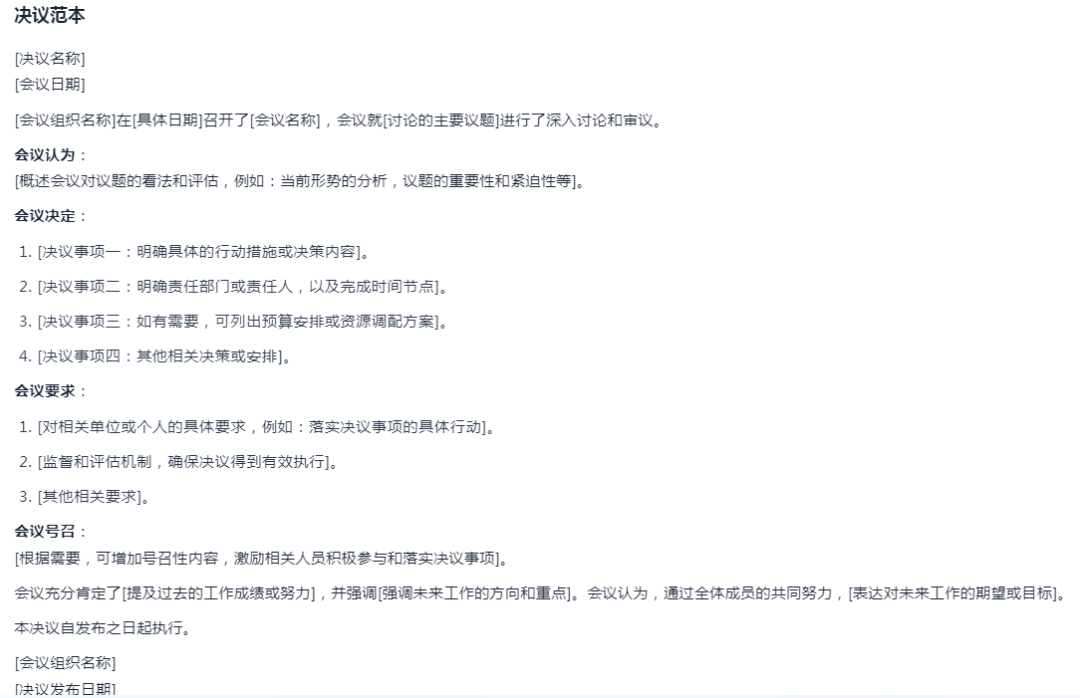 而写好决议,则能够为执行者提供明确的行动指南,从而提高组织的执行力和工作效率。