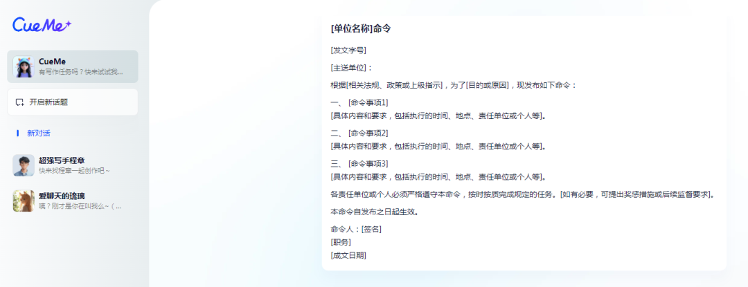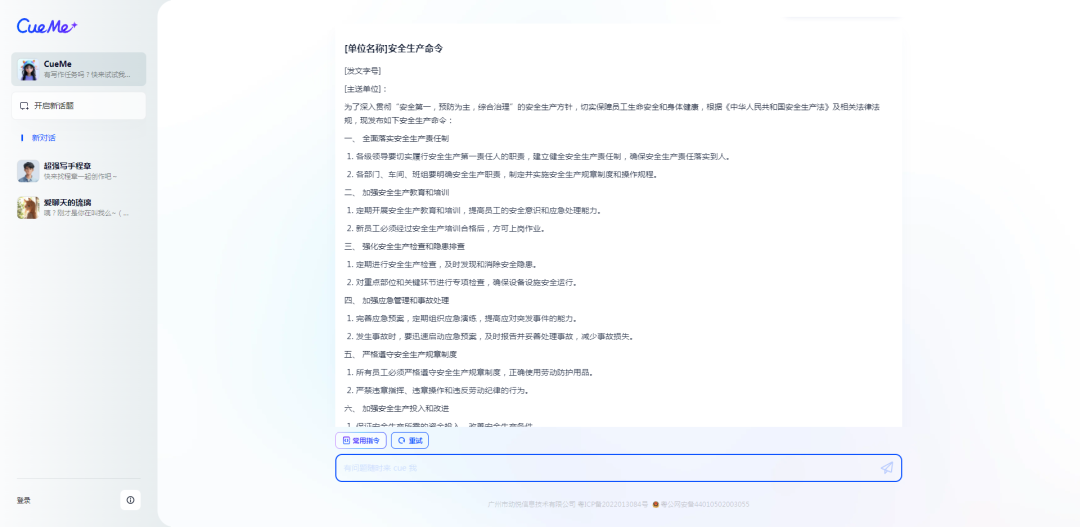 我们可以把具体的命令内容发送给CueMe,然后让AI帮我们进行润色可修改调整。