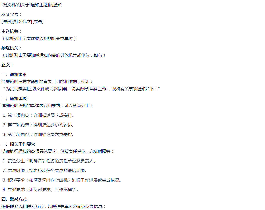 通知缘由不能含糊不清,明确缘由,如“根据《XX规定》第X条,决定召开XX会议”;同时,通知事项表述不能含糊或不完整,要明确时间、地点、参加人员及具体议程。提出的相关要求要明确不能缺乏可操作性,如“请于X月X日前将参会回执报送至XX邮箱”这样具体的要求。