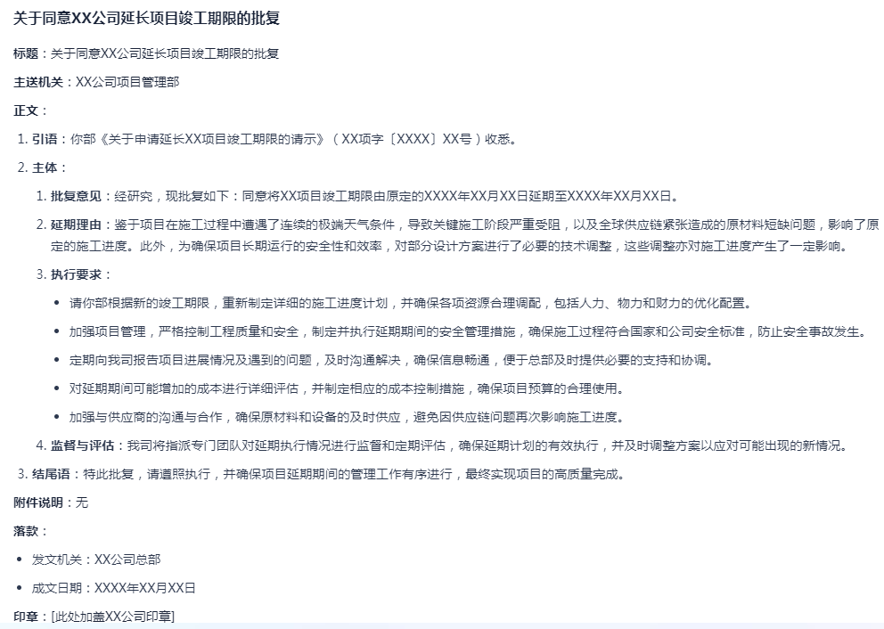 当然,仅仅有AI的加持还不够,想写出一份高质量的“批复”的关键,仍在于撰写者的专业知识、逻辑思维、语言表达能力和责任心。