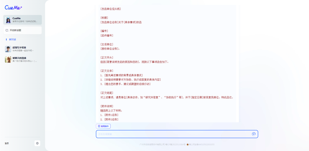 来自CueMe的温馨提醒:尽管AI可以生成文本,但您需要确保生成的内容准确无误,并符合相关的法律法规和政策要求。另外,AI是一个辅助工具,不能完全替代人类的判断和创意。在使用AI撰写公文时,工作人员应保持独立思考,对生成的文本进行适当的修改和优化,更需仔细核对,确保公文的语言流畅、逻辑清晰,且无任何错误或不当之处。同时,在使用AI工具处理公文时,尤其是涉及机密或敏感信息,需要确保工具的安全性和数据保护措施,避免信息泄露。