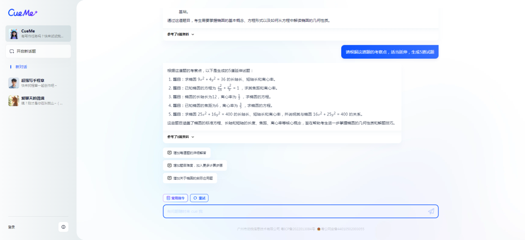 得益于CueMe出色的上下文联系的对话功能,我们能够得到5道全新的试题。