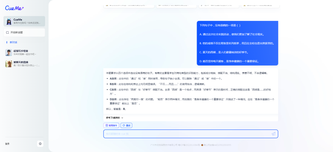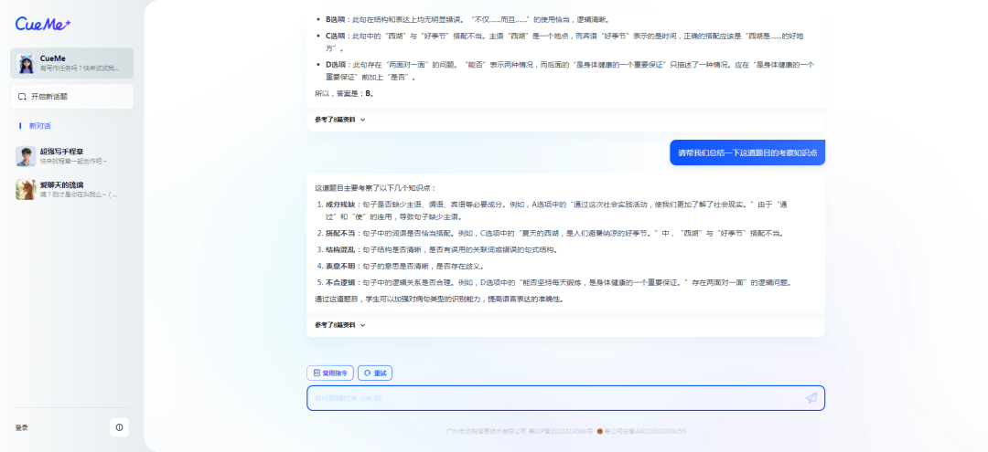 在实际应用中,我们可以把试题/练习题,直接发送给CueMe,然后让他帮我们进行分析和解答。