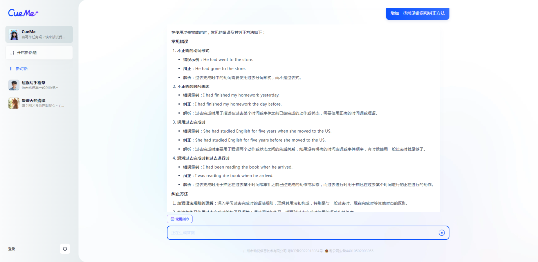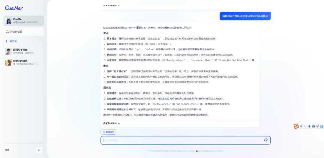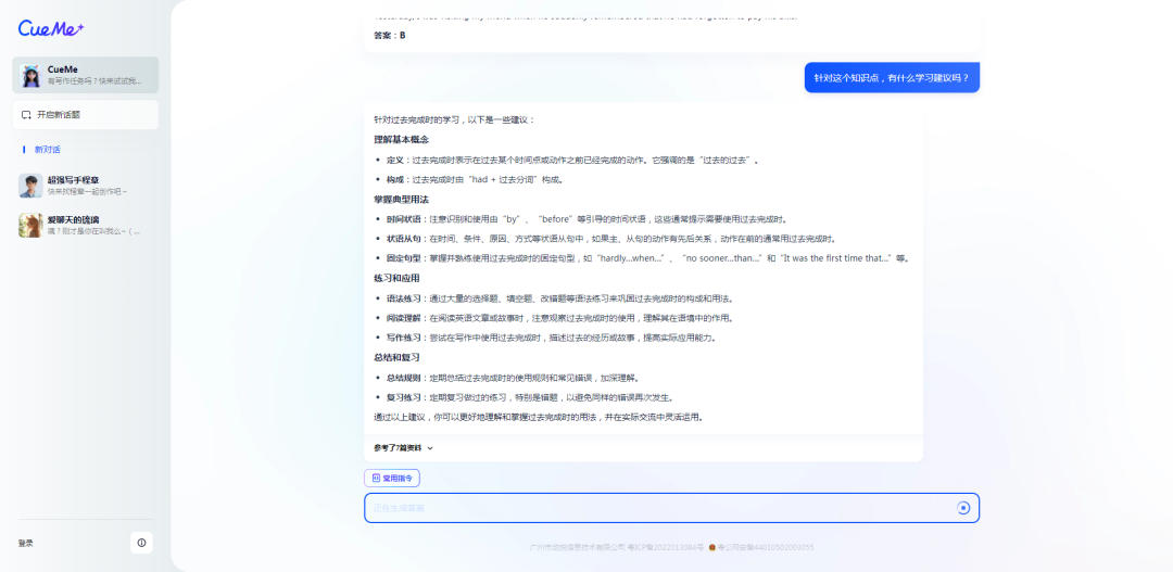 接下来,我们看看针对“过去完成时态”这一知识点,AI能给我们提供什么样的学习建议。