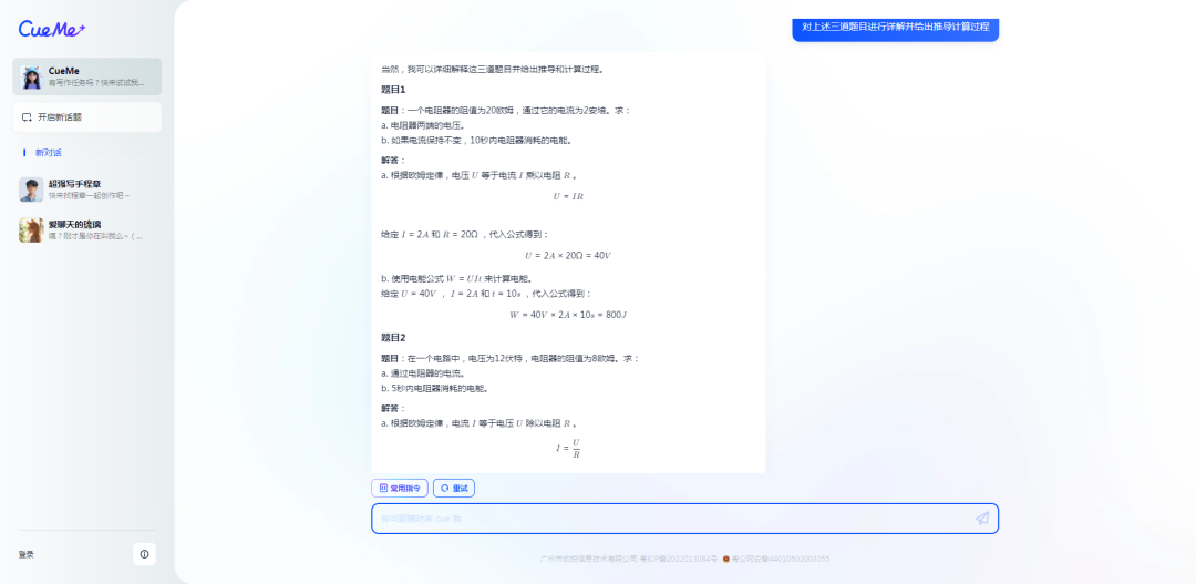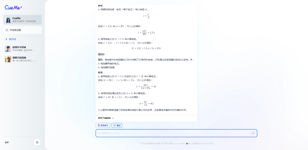 因为前面我们已经让AI总结了知识点,所以很轻松的理解上下文,CueMe就给我们生成了3道题。