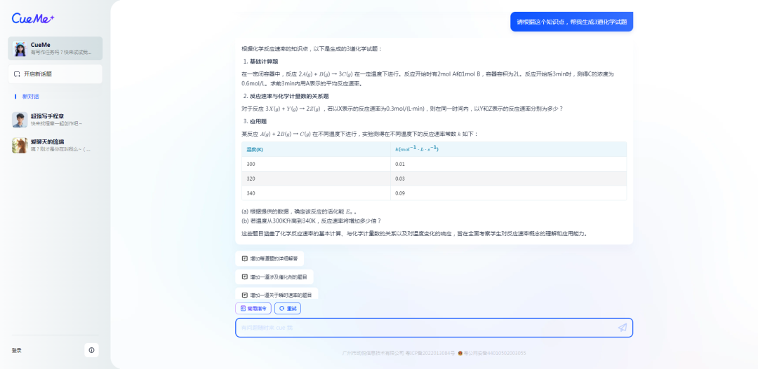 这个问题难不住AI,不仅帮我们出了三道化学试题,而且还区分了题型。三种题型完美覆盖。