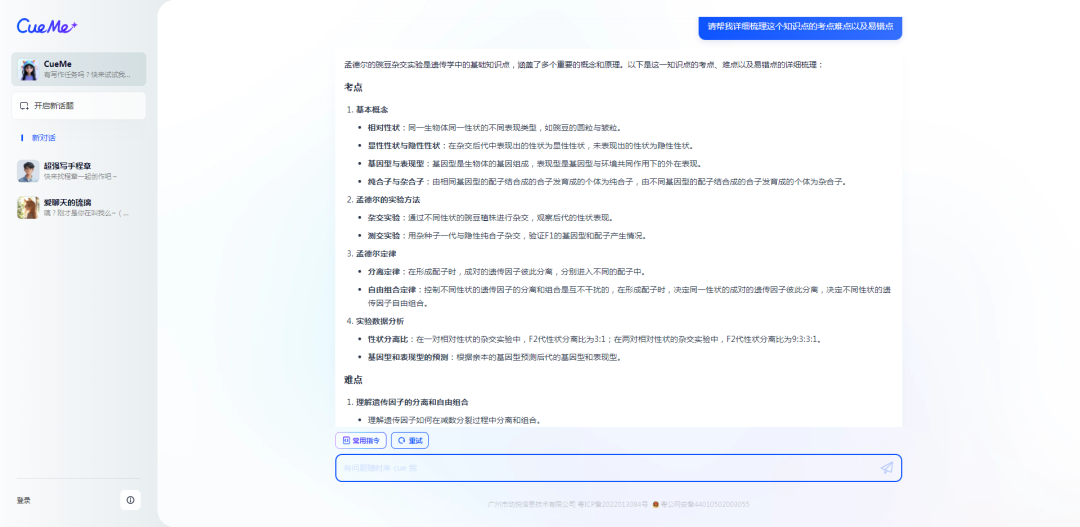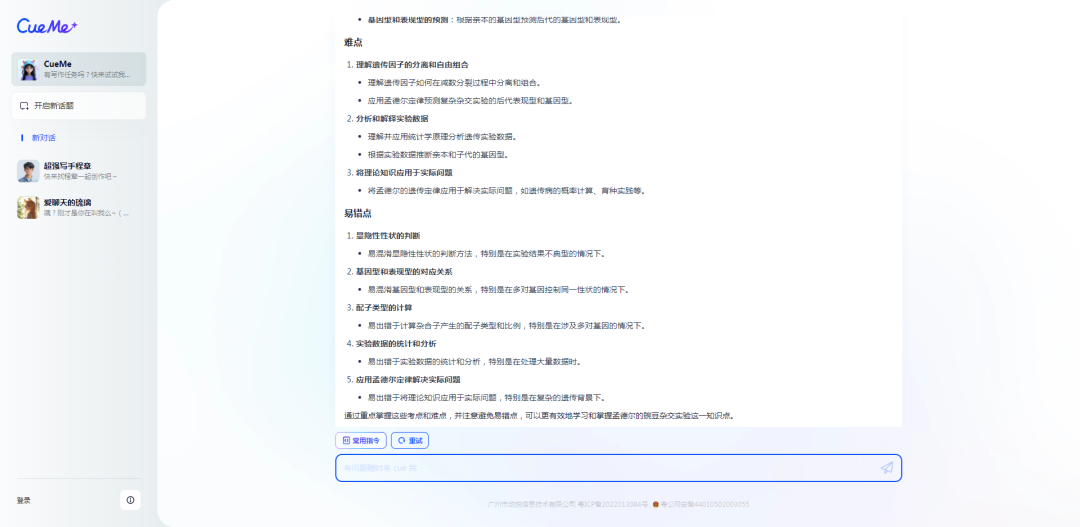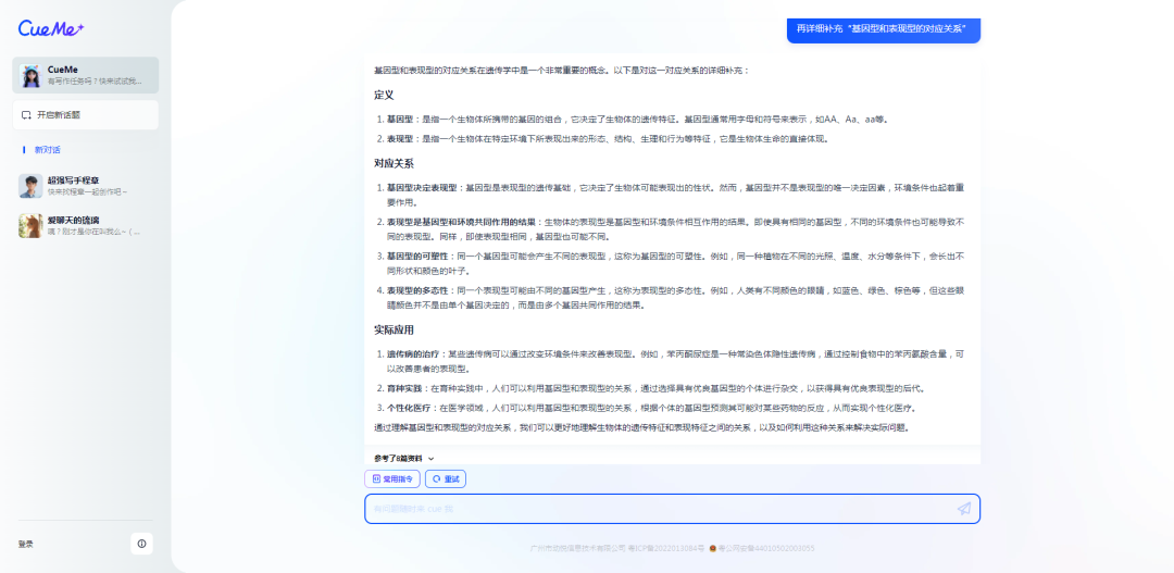 假设这里,我们需要让AI补充“基因型和表现型的对应关系”这方面的信息,则直接提问即可。
