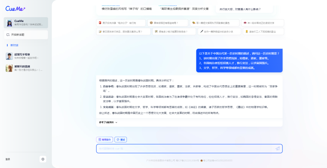 很快AI就经过层层分析,给出了准确的答案,“春秋战国时期”。