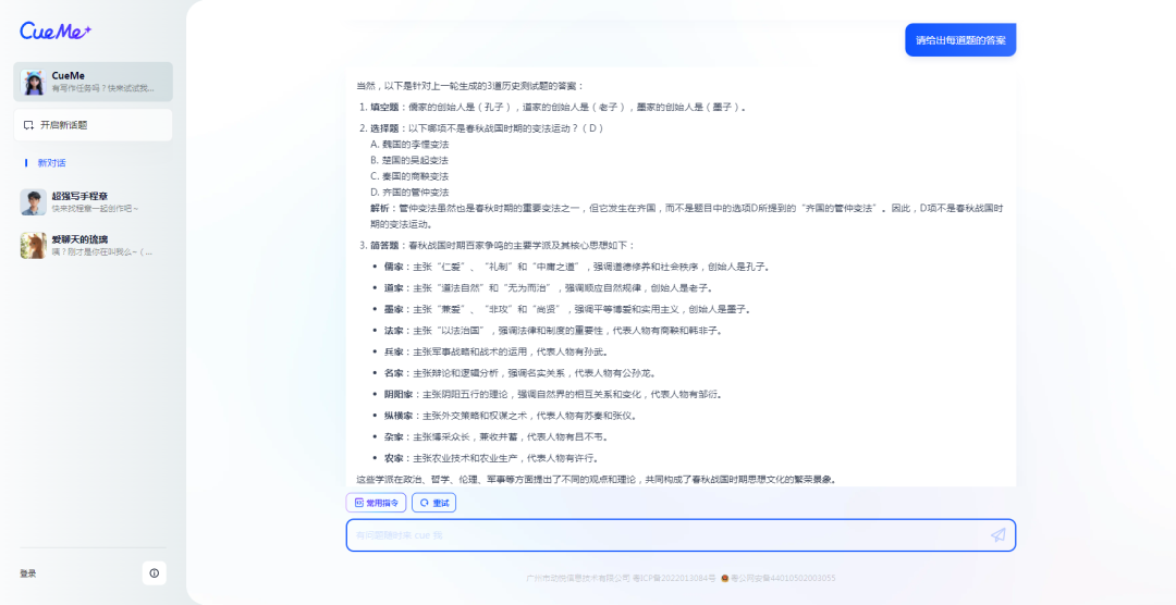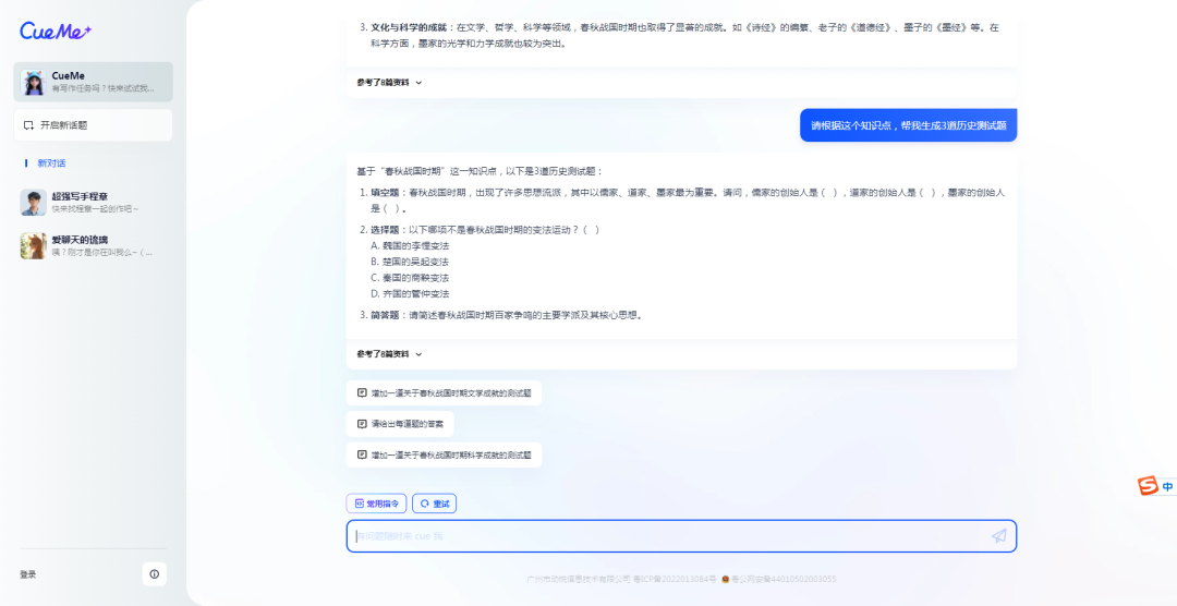 这样一来,从笔者的角度来看,历史老师对于知识点的总结、出题等方面,AI都能辅助我们完成。