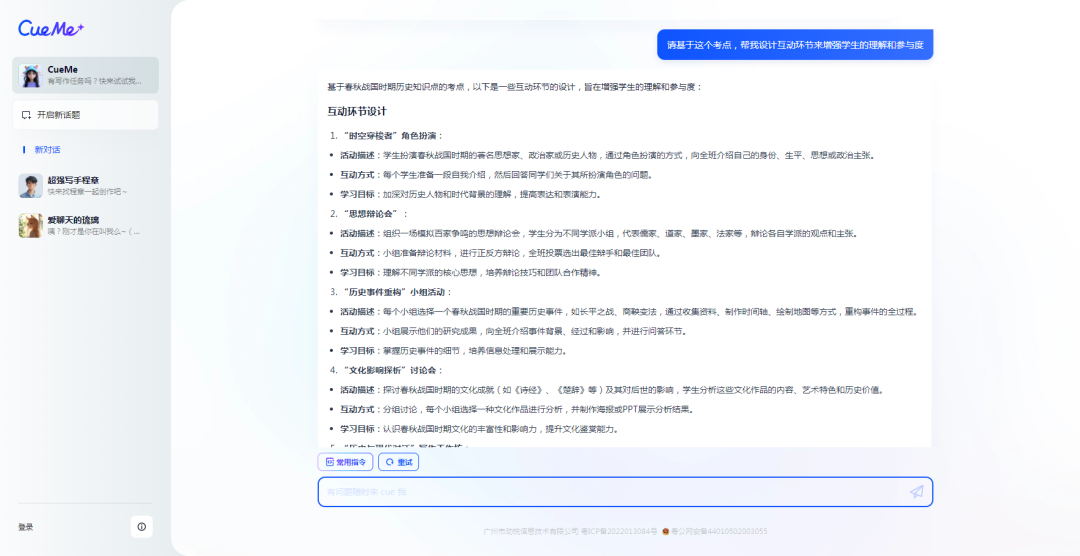 那么,对于历史学科的互动式教学,AI能不能也起到一定辅助作用呢?