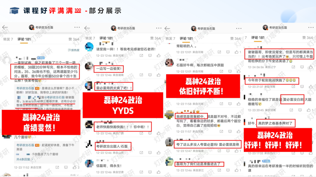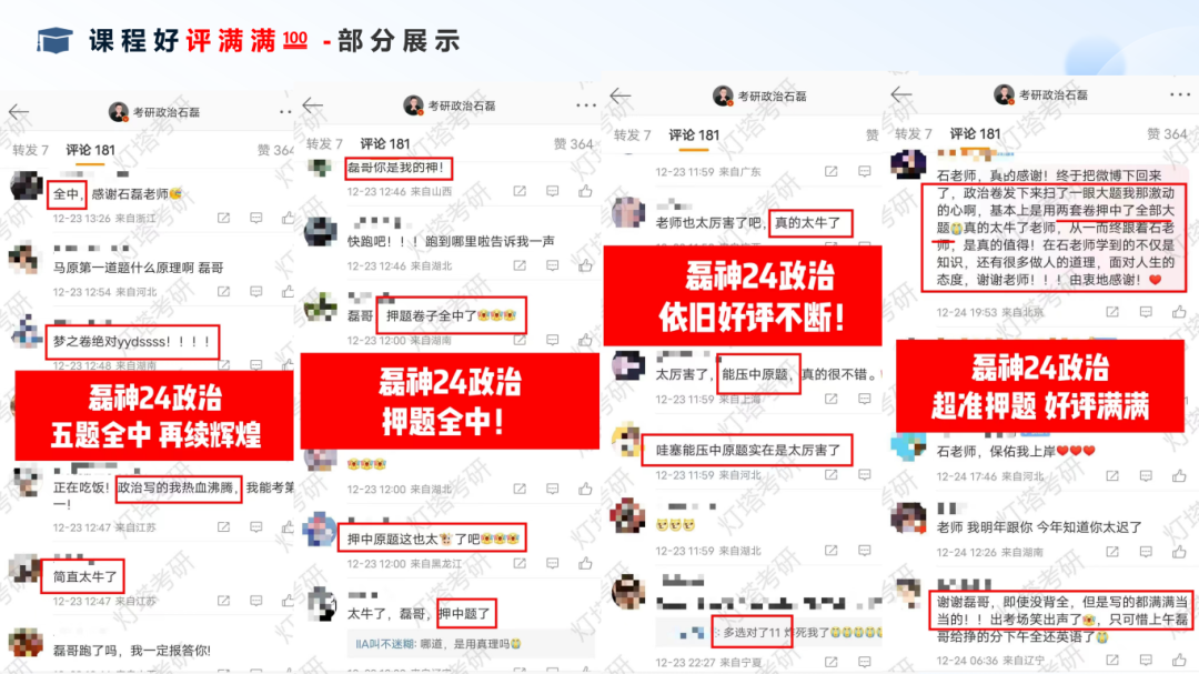 25考研试卷必有⚪题!必有⚪题!必有⚪题!超高命中率让跟随石老师学习政治的考生,政治平均成绩都在75+分!