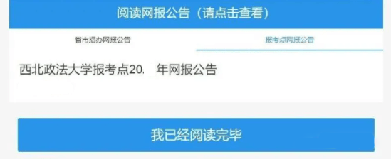 务必仔细阅读网报公告和考点公告,确认后点击“我已经阅读完毕”。