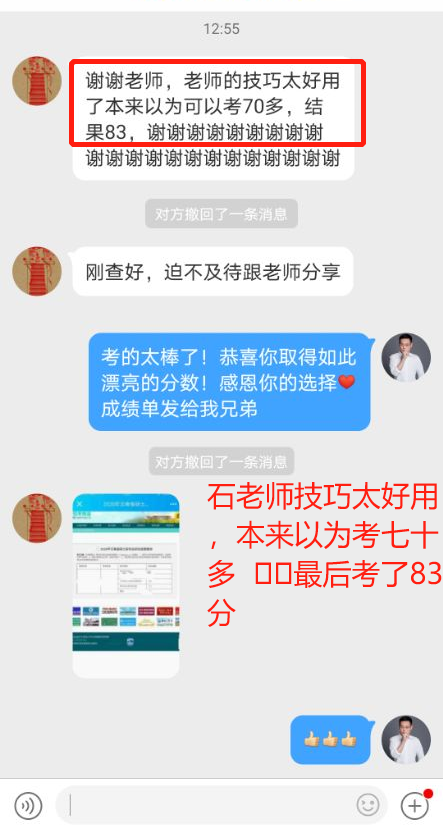 老师全程亲自带学,每天都通过QQ语音帮助学员逐题击破,亲自督导,“送分神子”不仅将⚪题送到学员手中,还要将da案装进学员脑中才放心。