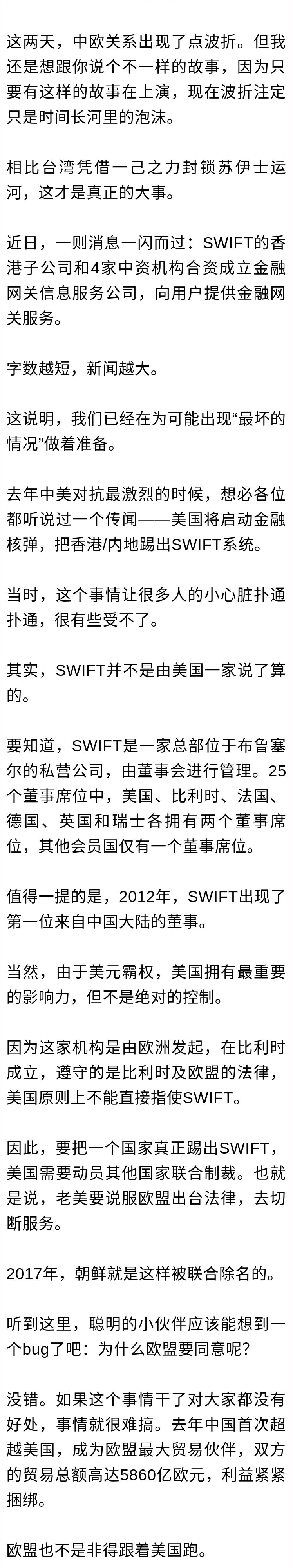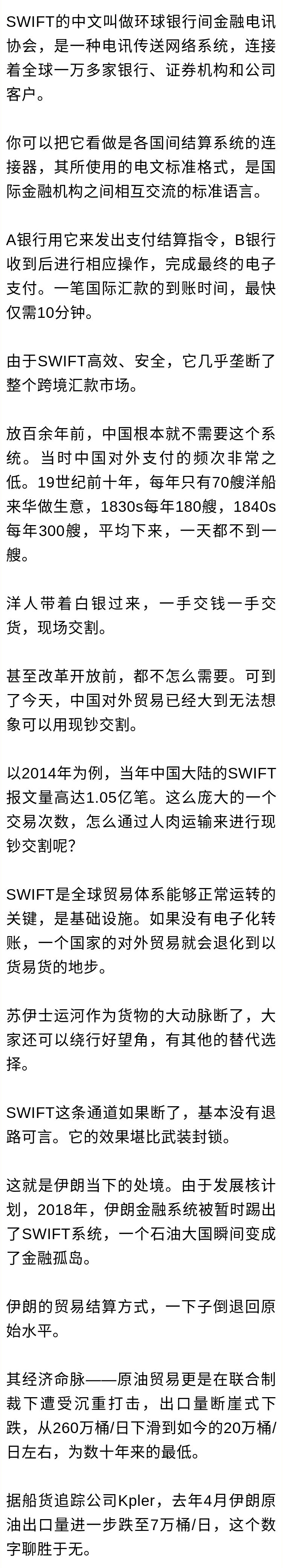 我在外企工作,我们公司与其它外国公司结算都靠swift,我不知道离开这个系统怎么跟外国公司在生意。