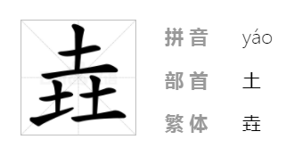 垚是尧的异体字。从三土,土,甲骨文金文与火字近似,常常混讹。