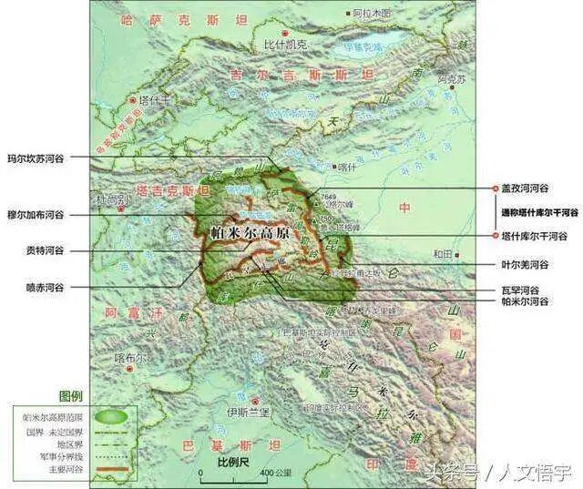 新疆西南帕米尔高原(Pamir Plateau),乃西域诸山脉之主轴,兴都库什山、天山、喀喇昆仑山及昆仑山、喜马拉雅山五大山脉汇聚于此。自古即是中国连接中亚、西亚、南亚的地理战略枢纽之地。