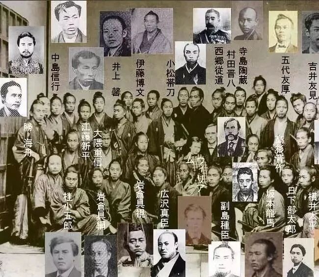 照片上在坐的各位,全是明治维新时期的重要人物,包括岩仓具定、江副廉藏、西乡隆盛,坂本龙马、伊藤博文都赫然在列。