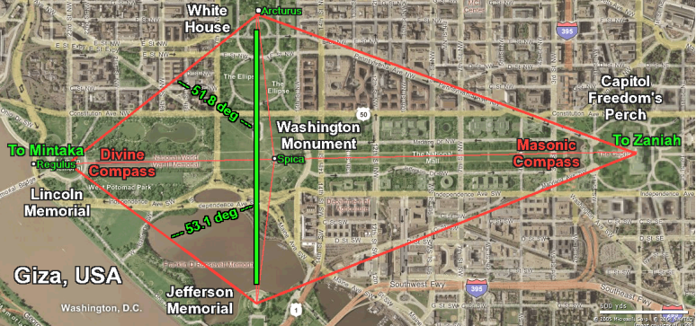 华盛顿特区的格局是由乔治·华盛顿规划的,他从20岁起就是共济会会员。他的辅助团队成员有首席建筑师皮埃尔·查尔斯·郎方、安德鲁·埃利科特,以及美国早期重要的黑人知识分子班纳克,他们都是共济会会员。
