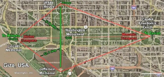 美国首都华盛顿的城建布局暗含共济会的符号密码。