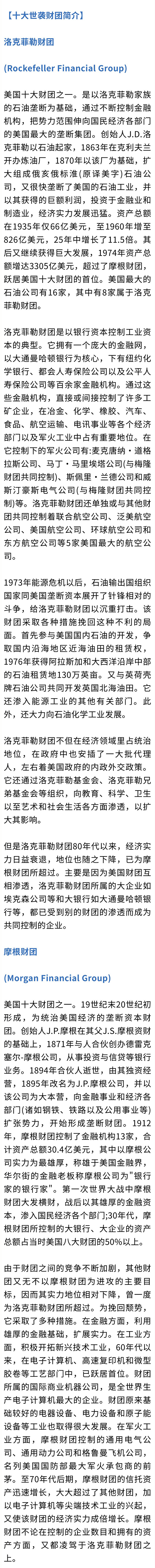 这十大财团背后还有一个组织的。这个组织曾经贩卖黑奴、建立种植园、开采金矿而掠夺殖民地,贩卖鸦片。这个组织的头就是犹太金融资本!这十大家族基本上都是依托于背后那个组织扶持而起家的。