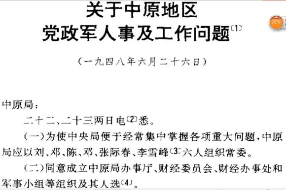 最近发现了1948年城南庄5月书记处会议后,中共中央给中原局关于中原地区党政军组织组建的一个重要指令性文件: