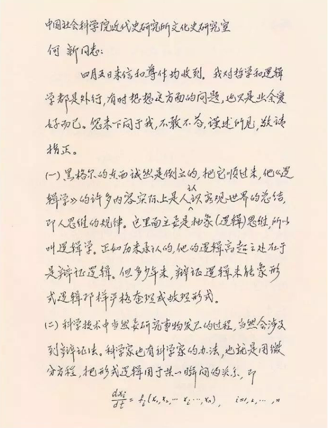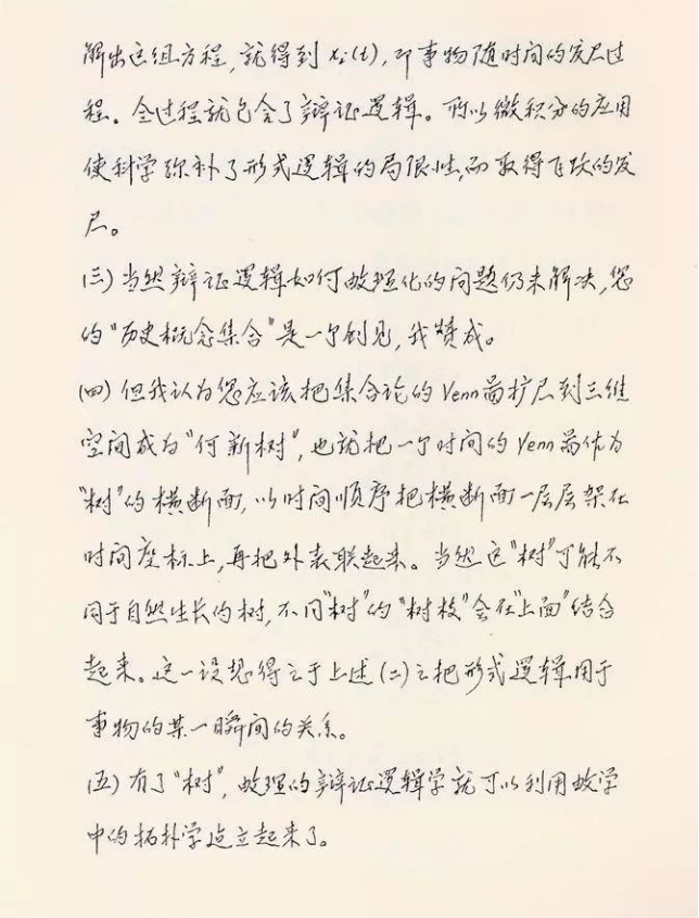 1980年代初,何新发表了一系列研究黑格尔辩证逻辑学的论文,并阐发出一种新的逻辑理论。这种新逻辑相对于流行的形式逻辑,是一种关于本体内容的逻辑,是关于事物进化、历史演化的逻辑,他以进化论为范例进行论述。这种逻辑有概念的自我否定,自我进化,形成概念集合,同时也就是事物本身、历史本身的演进过程,所以也是一组历史概念集合。这显然是一种意义极为重大的逻辑学,能够用以分析甚至预判历史的趋势走向。所以,这项研究引起了两弹一星元勋钱学森的关注,多次给何新写信,进行交流。钱老在信中说,“您的‘历史概念集合’是一个创见,我赞成”,并提议“您应该把集合论的Venn图扩展到三维空间成为‘何新树’”。众所周知,中国哲学研究,大多是研究哲学史的,我注六经、皓首穷经者多,真正有创见的哲学思想少、哲学家更少。何新自称民科,能够在深研古典哲学的基础上能够阐发新意,创建新的逻辑学,并且得到科学巨擘钱老的赞同,命之为“何新树”,这在中国哲学界可谓前所未有。