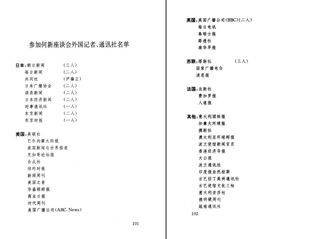 1991年7月10日,中国新闻工作者协会根据在京西方记者要求,主持召开驻京外国记者与何新的座谈会。54家东、西方通讯社和报刊的60多名驻京记者参加,一些外国使馆也派员听会。何新得以一白衣书生、“民科”身份面对众多西方大牌媒体,舌战群儒、纵论天下。此等场面也可谓是史无前例的。