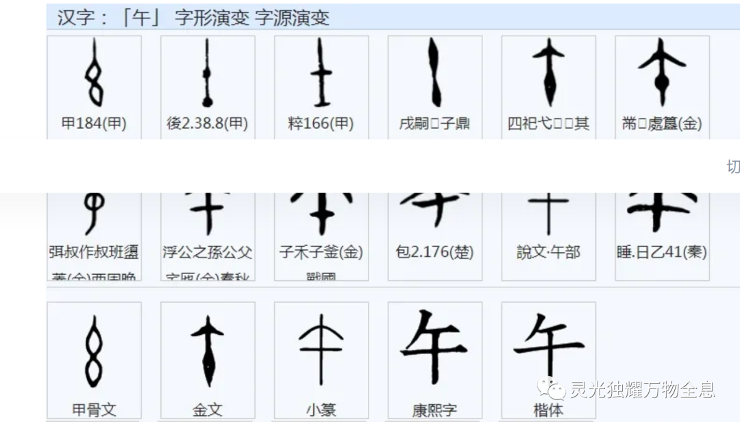 这个解释,余觉得不一定是正确的;因,十二地支的创造是一个比较独立的、逻辑自洽的系统,和天文历法相关;比如这个午字,先看甲骨文、篆文: