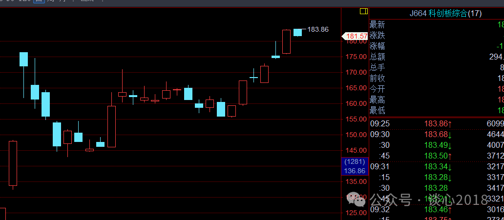 昨天快收盘的截图。上周日提醒要关注科创板,因为这里面的公司符合国家发展高科技,激励新质生产力的因素。