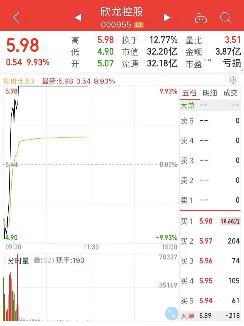 欣龙控股上演“地天板”行情,股价从跌停拉升至涨停,截至发稿,该股成交额3.87亿元,换手率12.77%。