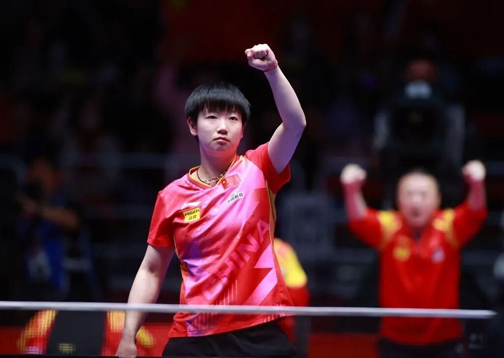 一位是东京奥运会女团女单冠军,一位是刚刚走入世界前列的花季少女,但这场决胜盘比得已经不仅仅是各自的水平能力,也是气势和心理了。一开始是张本美和更敢于出手更敢于变化,11比4先声夺人,但陈梦的大赛经验让她在最关键的时刻能够稳住阵脚,面对太想赢球的张本美和,同样更想赢球的陈梦一分分去拿,在决胜盘0比1落后的局面下连扳三局,逆转获胜,中国女乒至此3比2击败日本队,再一次登上冠军领奖台。