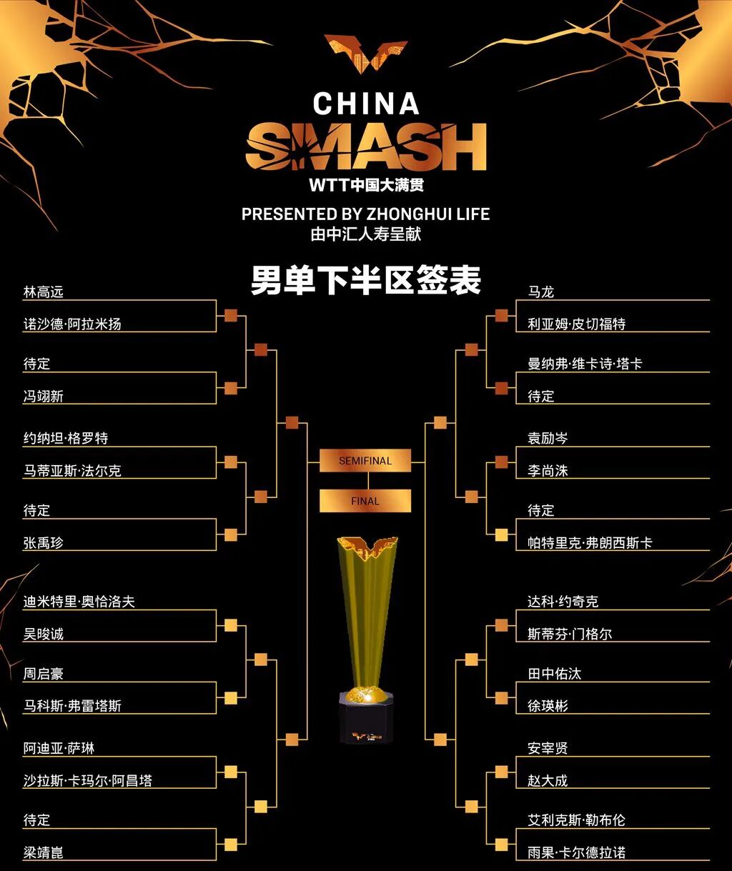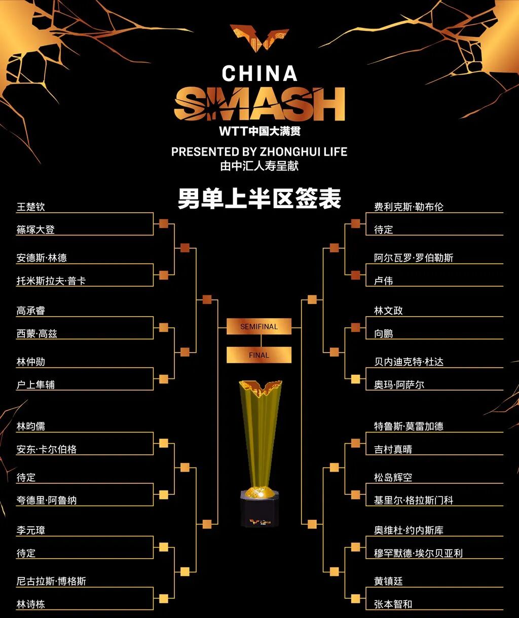 北京时间今天(27日)下午,2024WTT中国大满贯举行了正赛的抽签仪式,男女单打的签表结果也正式揭晓。