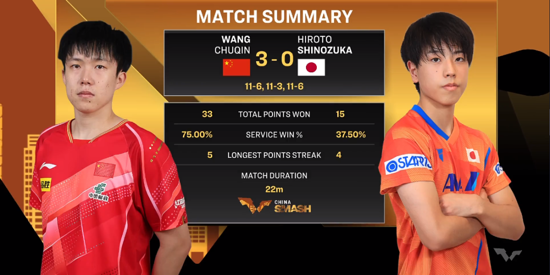 在刚刚结束的一场WTT中国大满贯男单首轮比赛中,头号种子王楚钦以3比0的比分战胜篠塚大登,收获开门红!