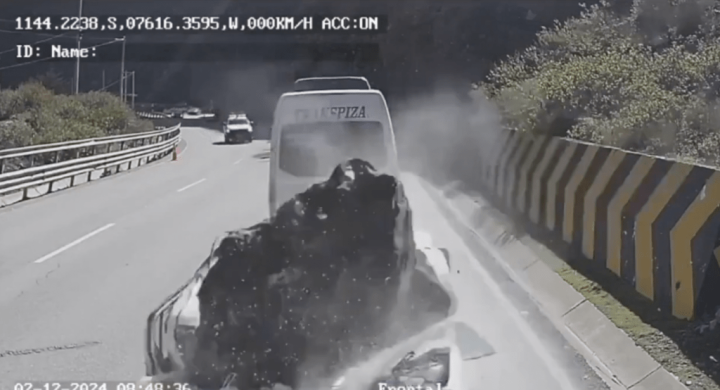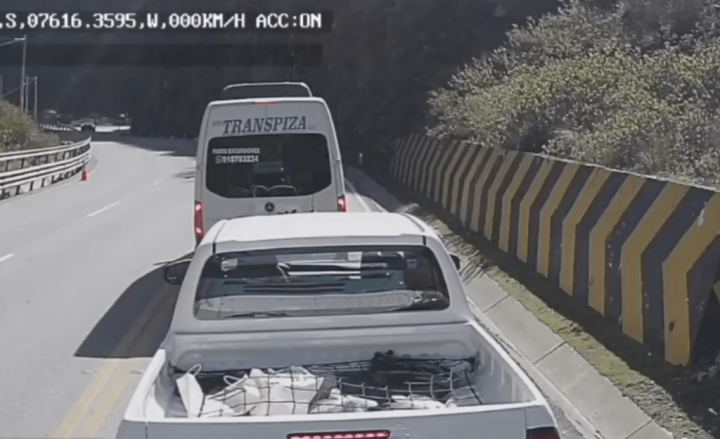 事发地点位于秘鲁瓦罗奇里省一条单线双向的山边公路上,监控画面显示,这辆皮卡车正停靠在路边,突然一块巨大石头从山边滚下,砸中皮卡车。