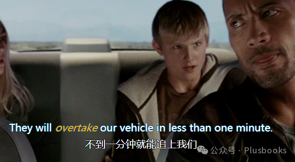 当然,overtake 还表示“超车”,如:It's dangerous to overtake on a bend. 在弯道强行超车是危险的。