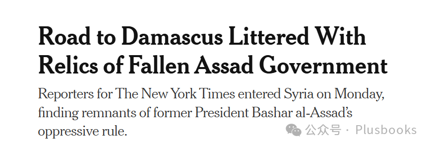 《纽约时报》的标题 Road to Damascus Littered with Relics of Fallen Assad Government.