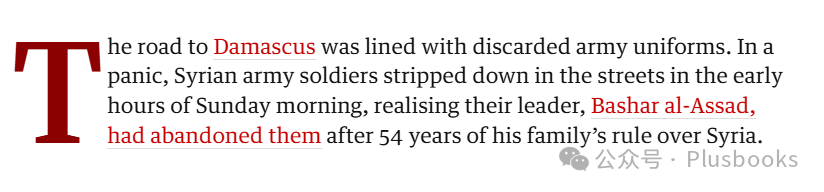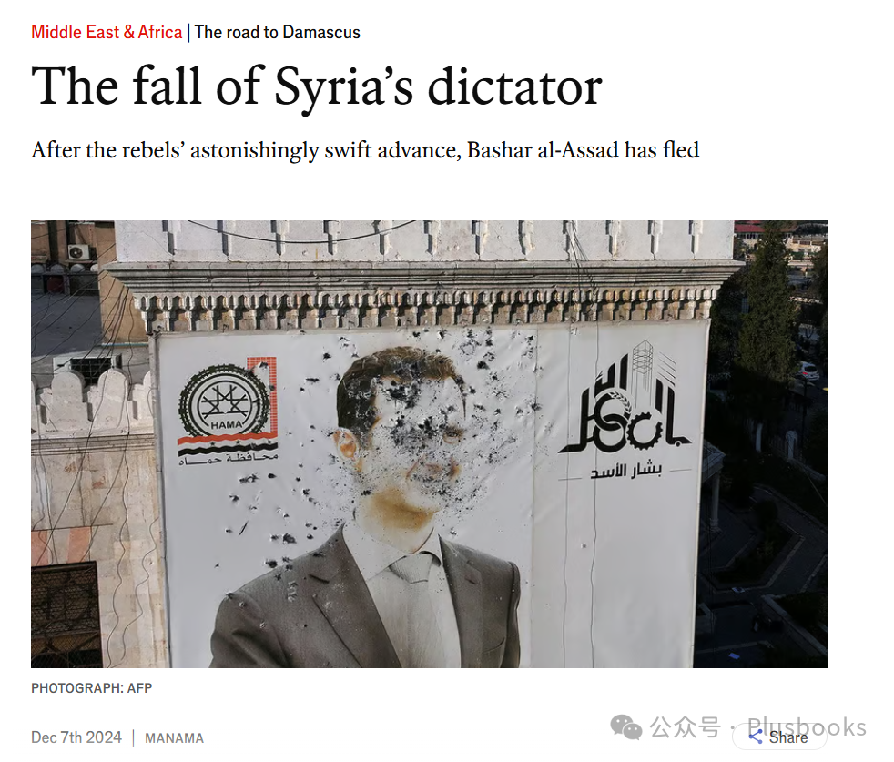 《经济学人》则把“the road to Damascus”用在小标题中,更多想表达的是隐喻含义,即“叙利亚政局突变”。