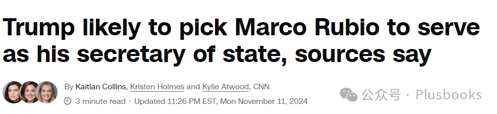 特朗普有望任命国务卿人选——马尔科·卢比奥。