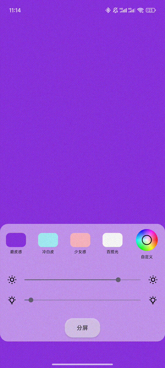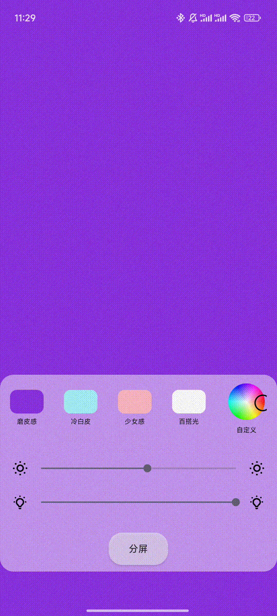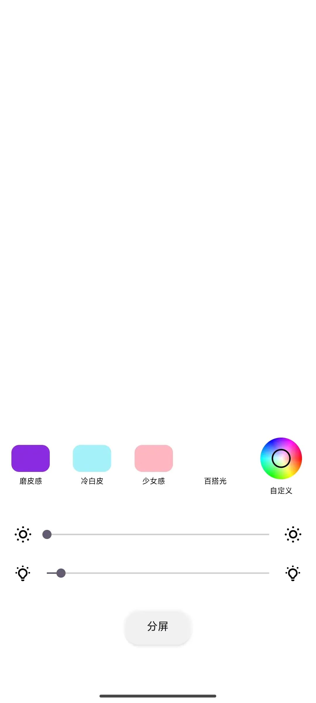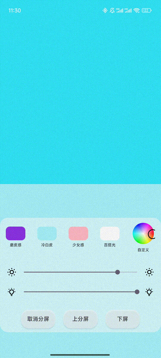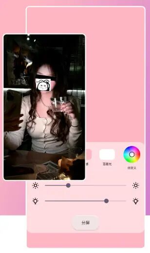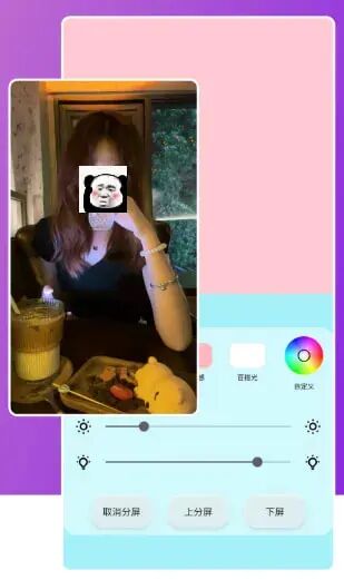 纯色补光不够,那我们可以开启分屏模式,选择上分屏,然后选择颜色,再选择下屏的颜色,氛围感直接拉满。