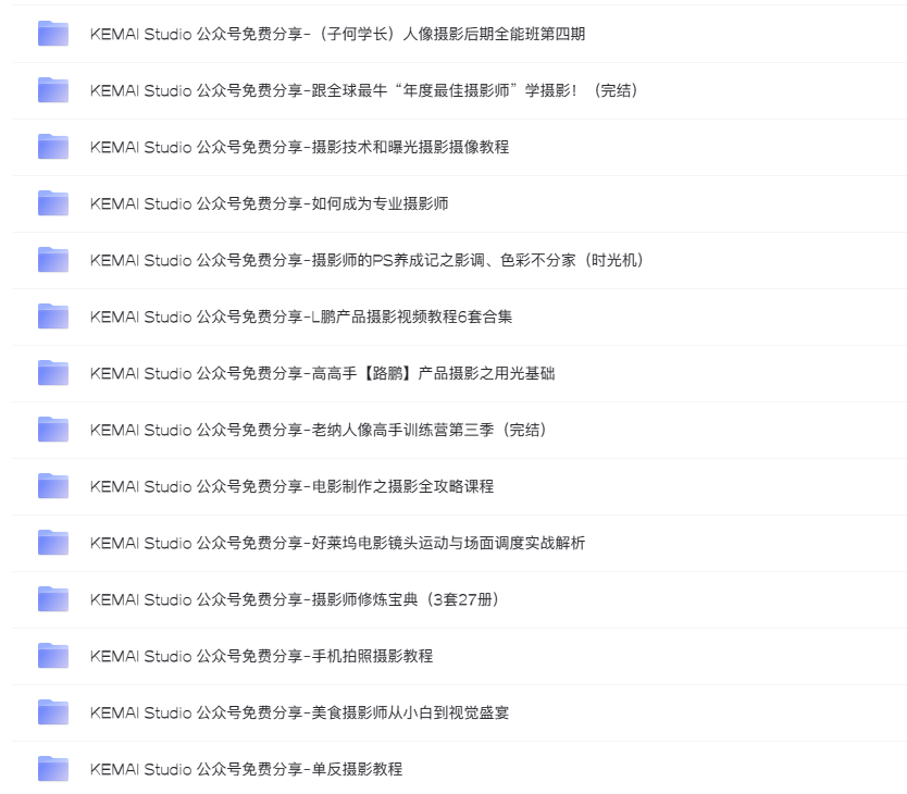 下载地址公众号对话框回复:摄影付费课程合集 免费获取(除关键词对应内容其余对话为机器人智能回复非真人答复)