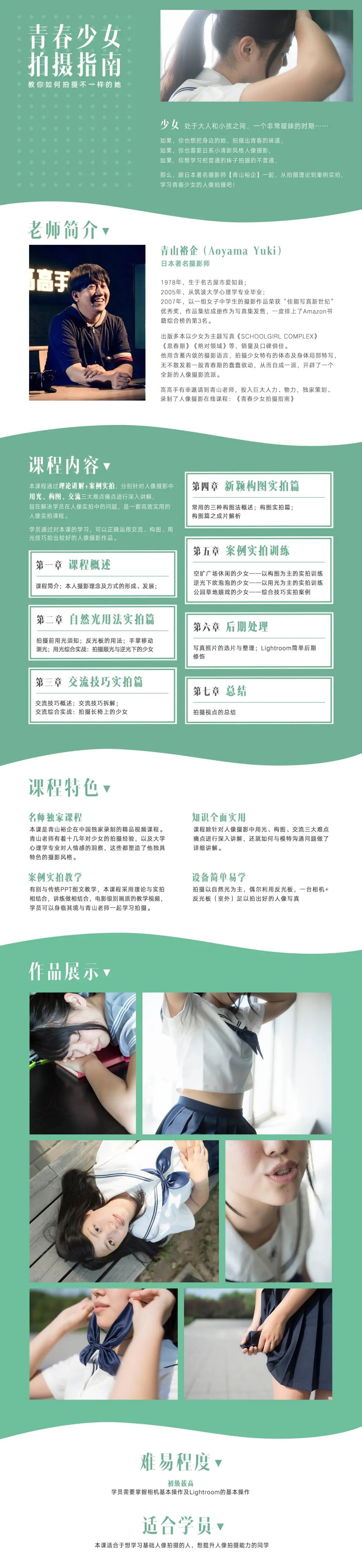 青山裕企日系JK制服青春少女校园人像摄影教程课程免费分享 价值 ¥199.00 知识星球试运营优惠即将结束