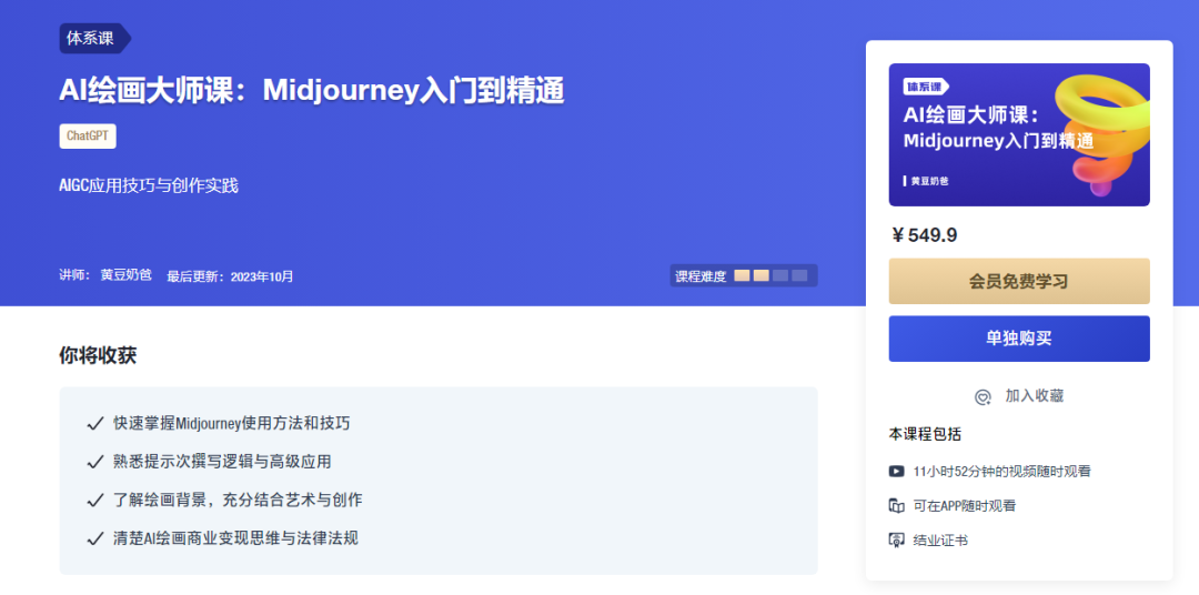本课程分为五大模块,从AI绘画基础工具与设计规则、Midjourney的进阶玩法、AI创作的底层逻辑与艺术背景、主流的艺术创作形态到AI绘画的商业变现。学习了本门课程,你将收获根据内容提炼出关键词和风格元素的能力,并将所学运用到实际工作中,把握行业变革与机遇。