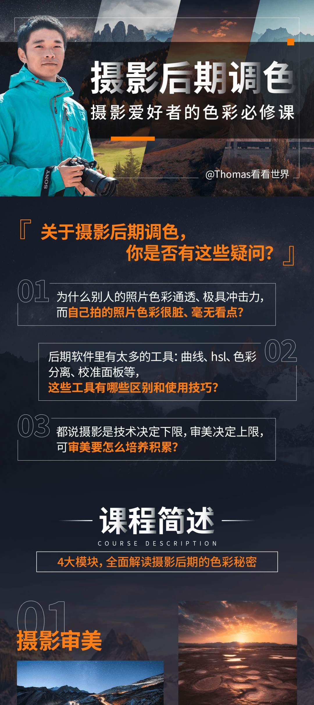 看看世界给摄影爱好者的色彩课从审美、技术、理论、实战4个维度系统性讲解色彩与调色 ¥298 视频课程免费分享 摄影后期调色必修课