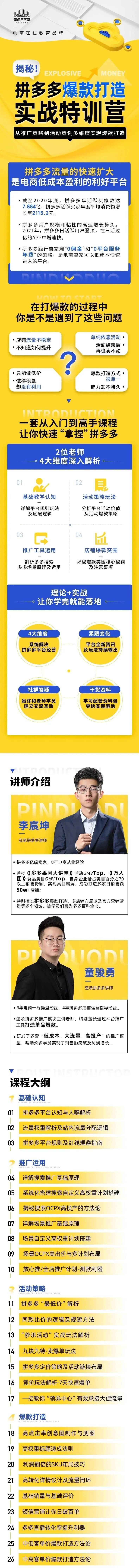 课程来自玺承云得拼多多爆款打造实战特训营,价值399元。一套从入门到高手课程,让你快速拿捏拼多多,2位老师4大维度深入解析,从推广策略到活动策划全面实现爆款打造,理论+实战,让你学完就能落地。