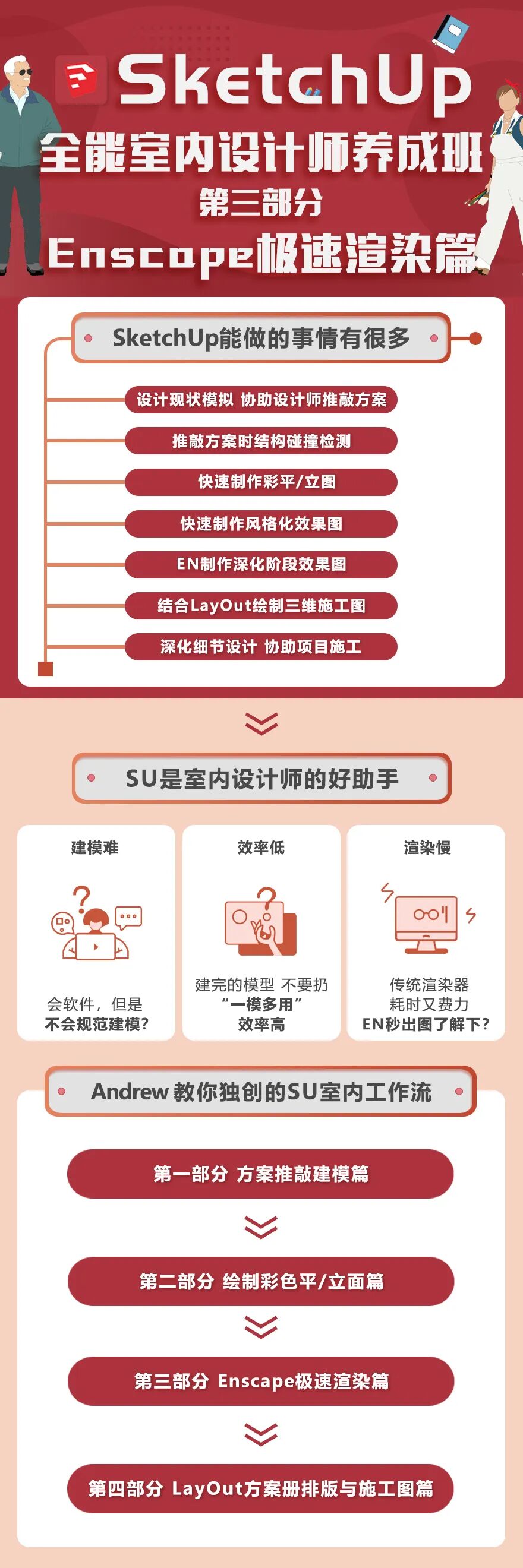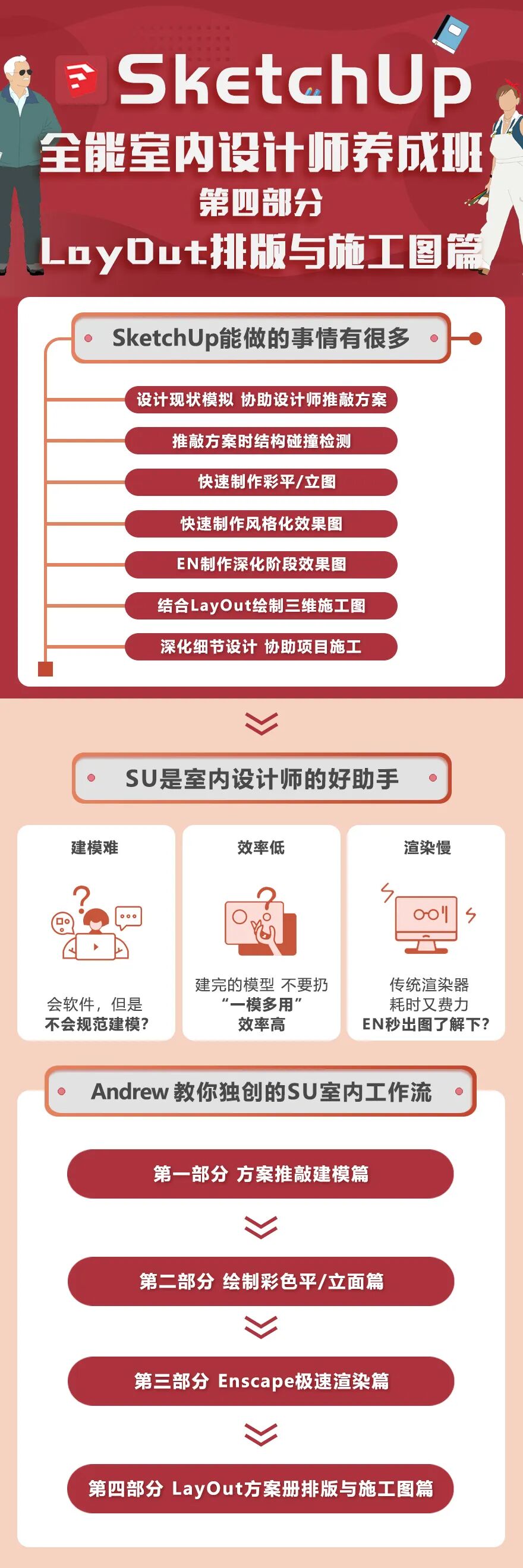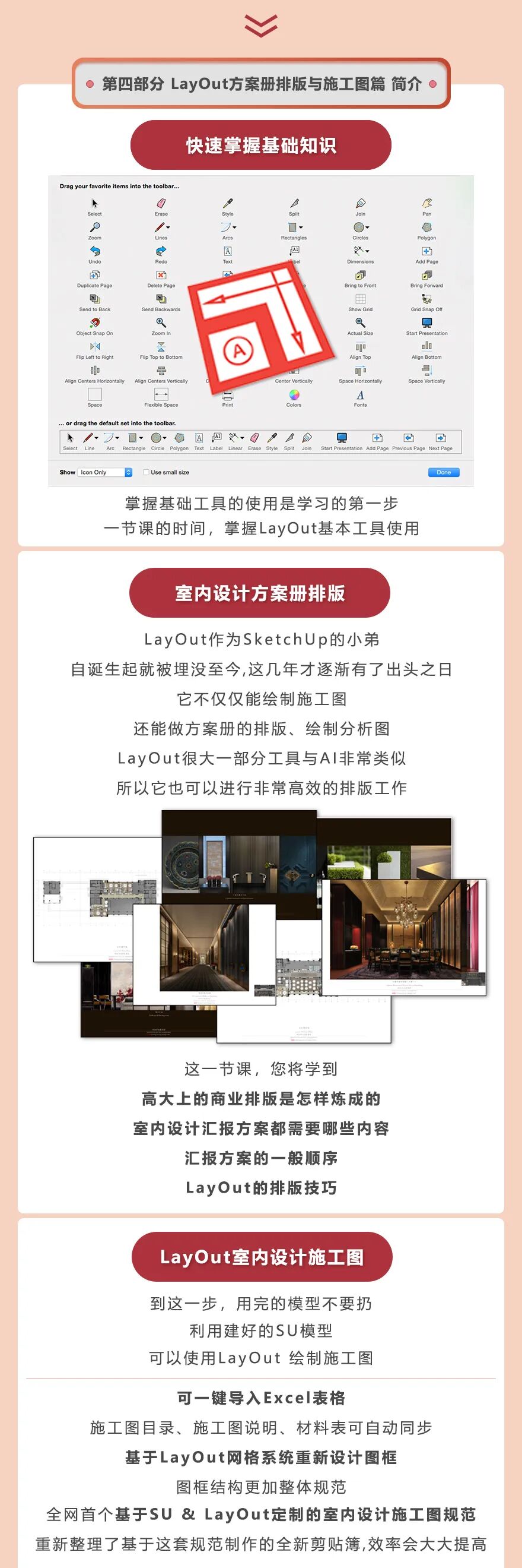 本课程主要讲如何使用LayOut制作高大上的方案汇报排版,以及使用LayOut绘制彩色三维施工图。