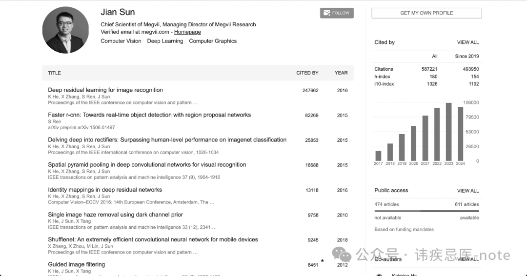 高考那年,孙剑以优异的成绩考入了西安交大,从此与人工智能结下了不解之缘。在西安交大的校园里,孙剑对人工智能的痴迷达到了极致,他仅用三年的时间就完成了硕士和博士的学习。在这段求学岁月里,他遇到了生命中的一位重要人物——他的导师(郑南宁院士)。导师的悉心教导和严格要求为孙剑打下了坚实的学术基础,也培养了他严谨的科学态度和勤奋的学习精神。在导师的引领下,孙剑每天都在与人工智能相关的书籍中遨游,他的勤奋和才华很快得到了认可,毕业后便收到了微软亚洲研究院的橄榄枝,成为首席研究员。